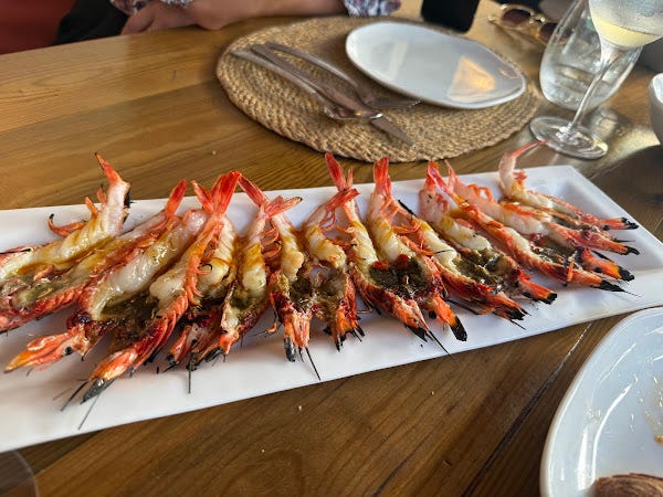 Then we were right back on track with these grilled Roses red prawns. There’s always a risk when you shell out (’scuse the pun) a lot of money (by Spanish standards - in London they’d be three times this price) on top ingredients that any mistakes in the kitchen could render your investment void. These, though, had been treated very well - timed to just under with regards to some of the larger animals but always so that the meat pulled out of the shell in a satisfying single piece, they were beautifully sweet and smoky from the grill, a brushing of chicken jus the perfect extra touch. Well worth the €39.