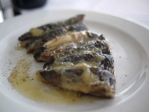 All of which would mean nothing if the food wasn't any good, but here's the thing - Dalla serves some of the best Italian food I've ever had in London, or in Italy. Dishes which look exciting enough on paper arrive as the absolute very best versions of themselves, and often with a little extra unexpected twist that pushes them to even further greatness. These are Cornish sardines, which I would have been happy enough with just simply grilled whole, but at Dalla they're meticulously deboned and served warm fresh off the grill with a lovely sharp garlic vinaigrette.
