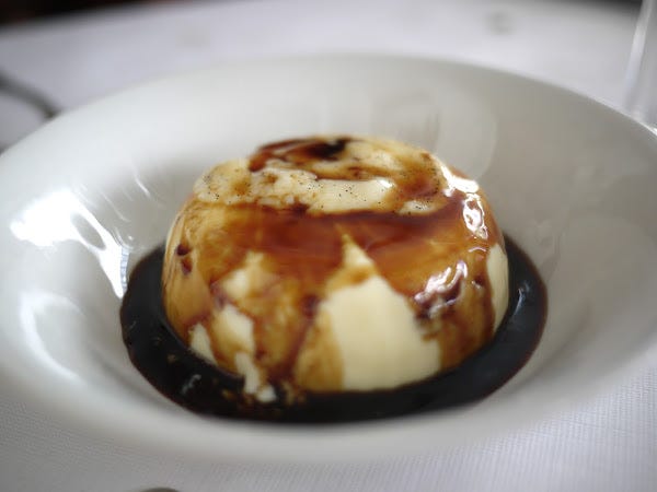 But pannacotta - so often a lazy pub dessert afterthought - was genuinely great, so ethereally light it practically disappeared in the mouth leaving a heady note of vanilla-flecked dairy and lovely sharp-sweet saba (a syrupy liquid made from grape must). I thought pannacotta was boring - it just turned out I'd never had it before.