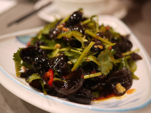 Wood ear fungus was equally brilliant - again bursting with flavour, with a lovely balance of vinegar and oil, texture came in the form of little bits of peanuts but also, cleverly, chopped coriander stalks which added colour and crunch to what could have otherwise been a bit of a monochrome experience. But the star of the show was of course the fungus, a lovely ingredient treated well.
