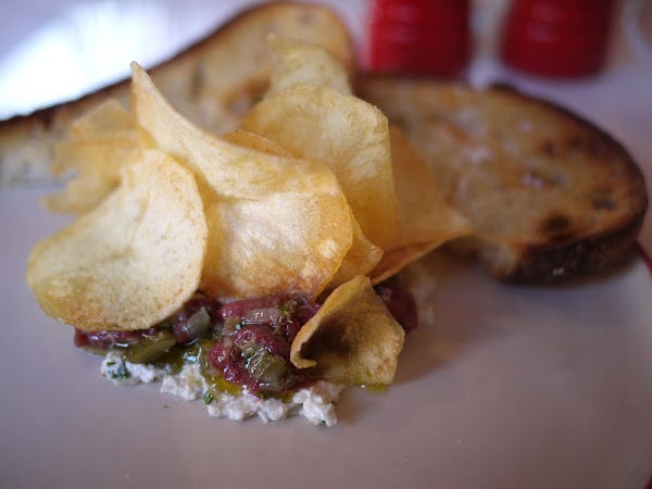 Beef tartare was lovely - a good balance of beefy fat, sharp capers and peppery horseradish. Homemade crisps on top (I think perhaps fried in tallow) added crunch, and underneath it all was a fantastically beefy slab of dripping-fried sourdough. Again, it’s very likely you will have seen beef tartare before but the extra attention to detail here - particularly with the big hit of beef flavour from the various fat elements - really lifted it into something quite special. I’ve had worse tartars that cost 3 times the price.