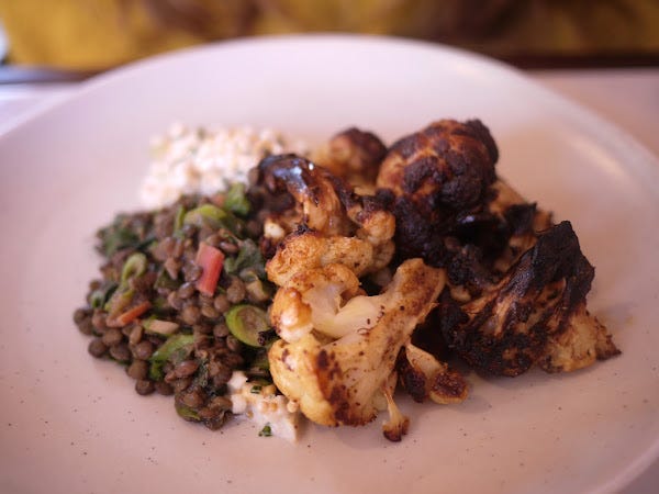 Cauliflower displayed yet more intelligent grilling, some earthy braised lentils and - my favourite element - celeriac remoulade that came chopped into neat little mustardy cubes rather than the usual spaghetti.