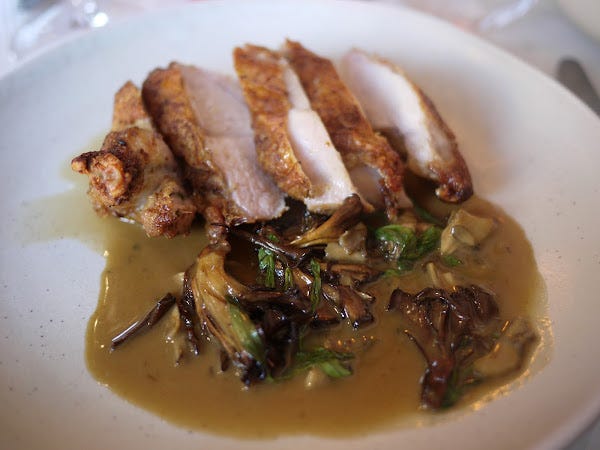You will have seen chicken, mushroom and tarragon put together before, but very rarely as successfully as this. The chicken itself was the star - a huge supreme sliced into thick, moist slices, each topped with a delicate, salty cracker of skin. The mushroom and tarragon were bound by a super-silky sauce, powerfully flavoured and nicely seasoned, the perfect accompaniment to the chicken. Honestly, it was just great. My plate was completely wiped clean.